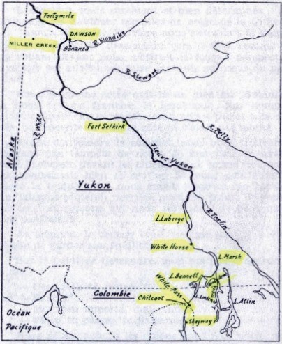 Carte de Skagway à Fortymile (Source: Marcel Bobilier, O.M.I.)