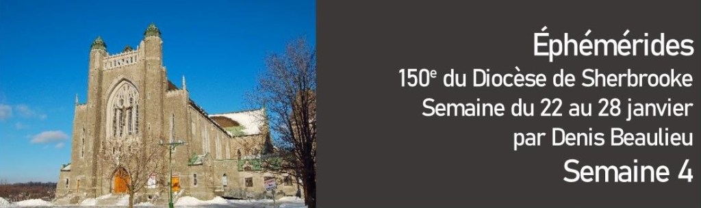 2024 marquera le 150e anniversaire du diocèse de Sherbrooke. Au moment de son décès, Denis Beaulieu était en voie de finaliser un bouquin de plus de 500 pages sur l’histoire du diocèse à l’occasion de cet anniversaire. J’ai pu voir une copie ‘0’ de l’ouvrage, fort impressionnant, tant il déborde de détails de tous genres. Denis planifiait un lancement en février 2024 mais dès le début de janvier et ce, pour toute l’année 2024, il nous proposait une série hebdomadaire sur les éphémérides de l’histoire du diocèse et de ses paroisses, qui constitue une petite partie seulement du livre.