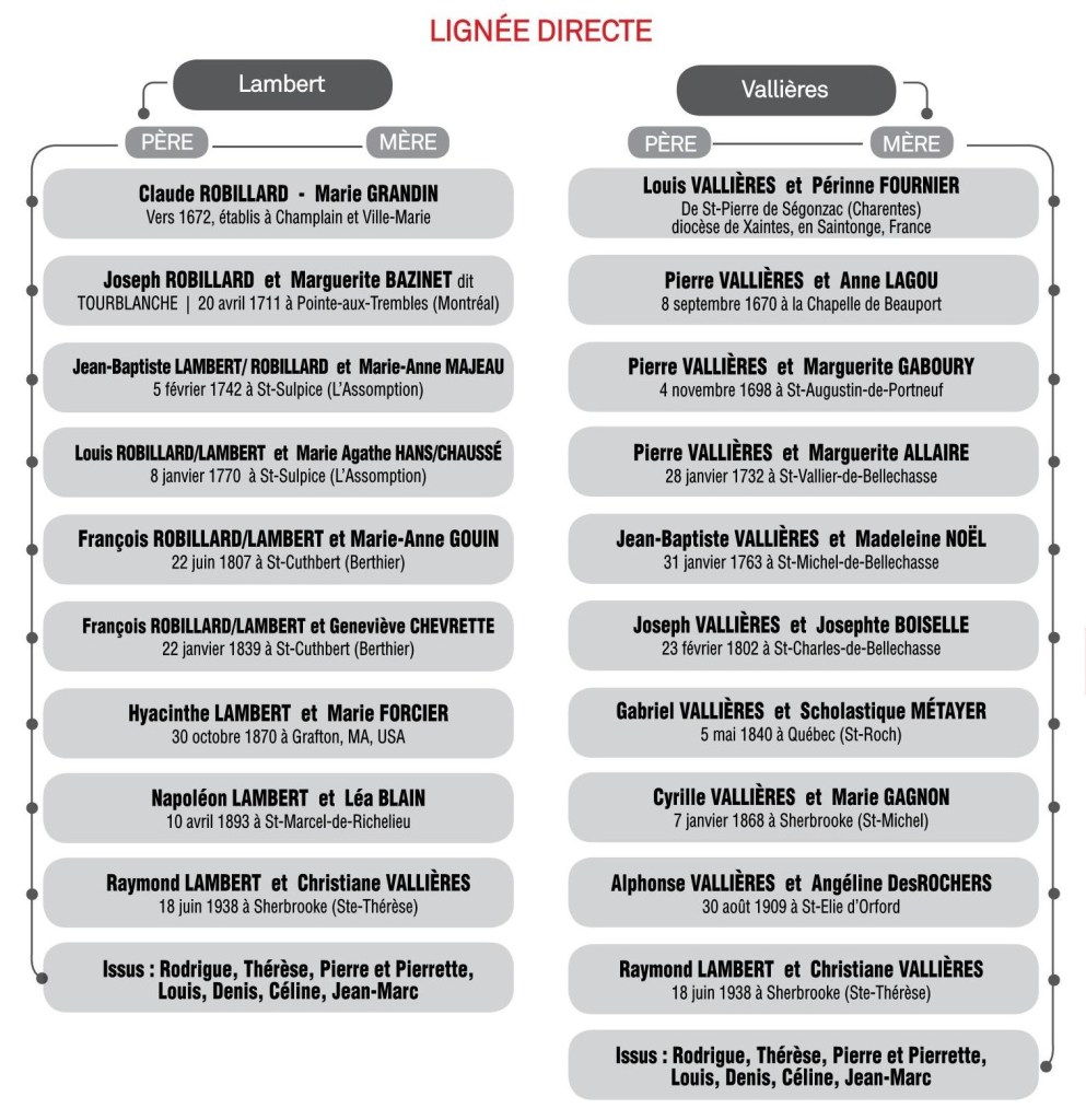 Généalogie paternelle et maternelle de Raymond Lambert.