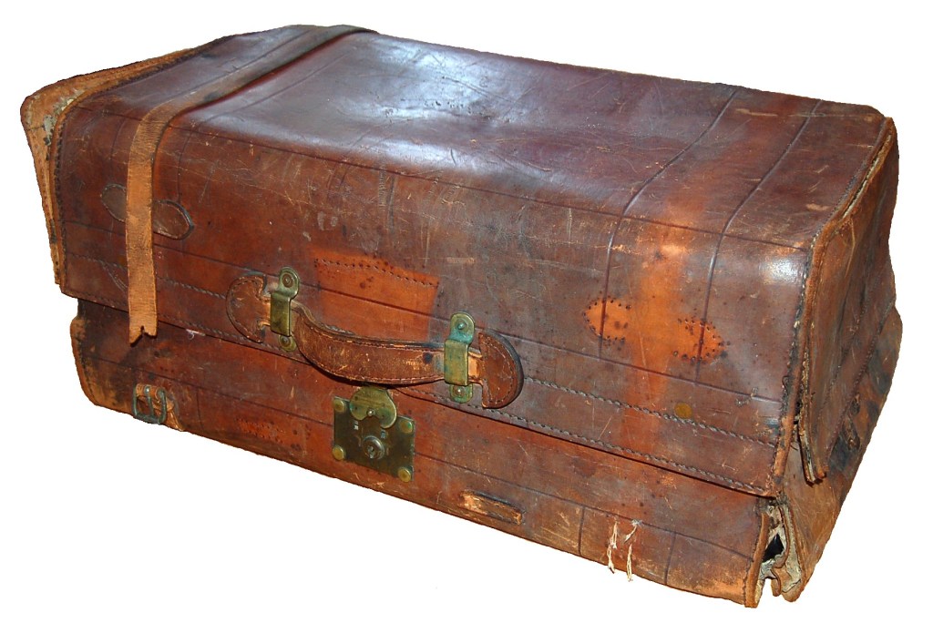 La malle de voyage de J.A. Chicoyne. Source: Denis Beaulieu 2011, Collection Andrée Benoît et Richard Flibotte, Saint-Hyacinthe.