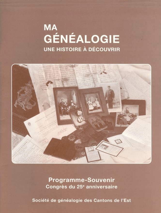 Au début de l’année 1993, un comité fut formé pour l’organisation d’un premier congrès de généalogie à Sherbrooke soulignant les vingt-cinq ans d’existence de la Société. Ma généalogie, une histoire à découvrir fut proposée comme thème du congrès et de l’exposition.