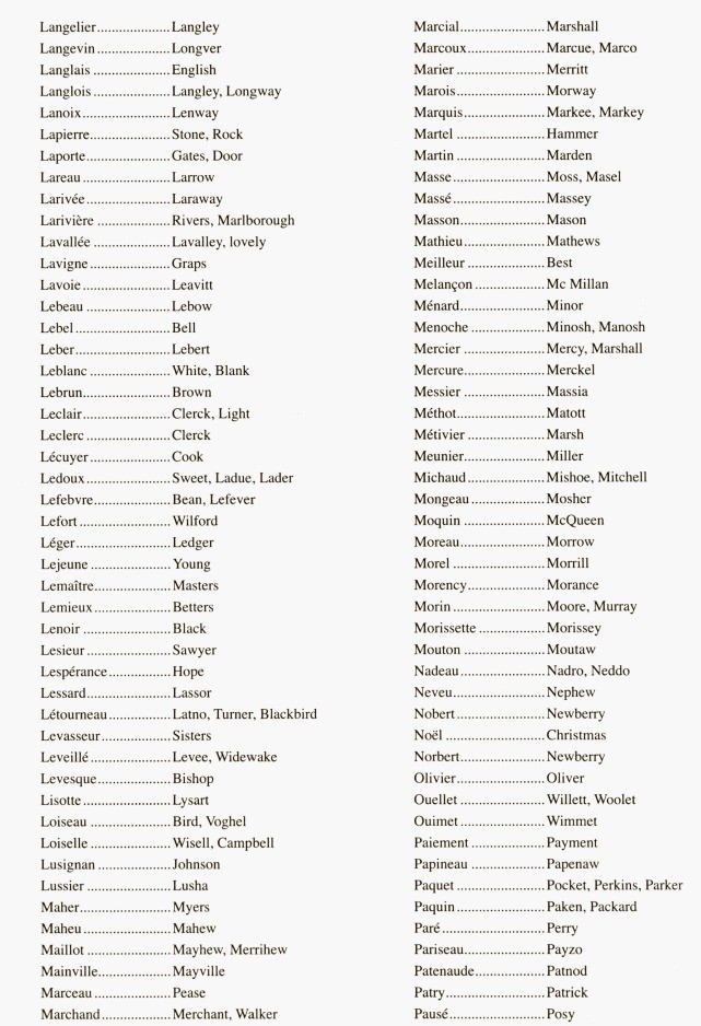 Au cours de mes recherches sur les Léveillé d’Amérique, j’ai fait beaucoup d’incursions du côté américain, particulièrement dans les Vital Records de la Nouvelle-Angleterre : Maine, Massachusetts, New Hampshire, Rhode Island et Vermont. Au long de ces recherches, j’ai rencontré plusieurs noms de familles francophones qui ont été américanisés. J’ai aussi consulté plusieurs ouvrages sur le sujet. L‘une des listes la plus complète que j’ai rencontrée peut être consultée sur le site intemet de l’American French Genealogical Society.