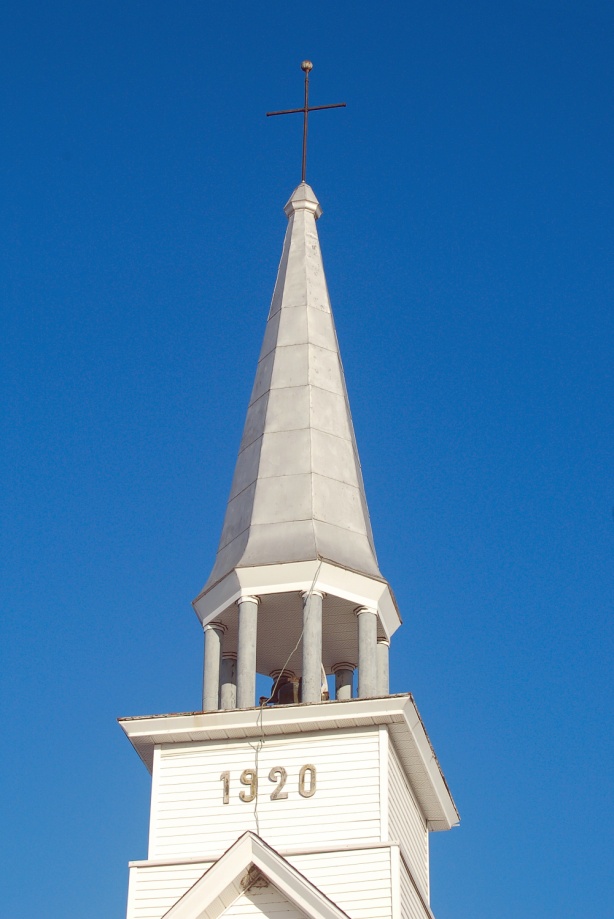 Clocher de l’actuelle église de Notre-Dame-de-la-Paix de Johnville. Crédit pour la photo : Denis Beaulieu