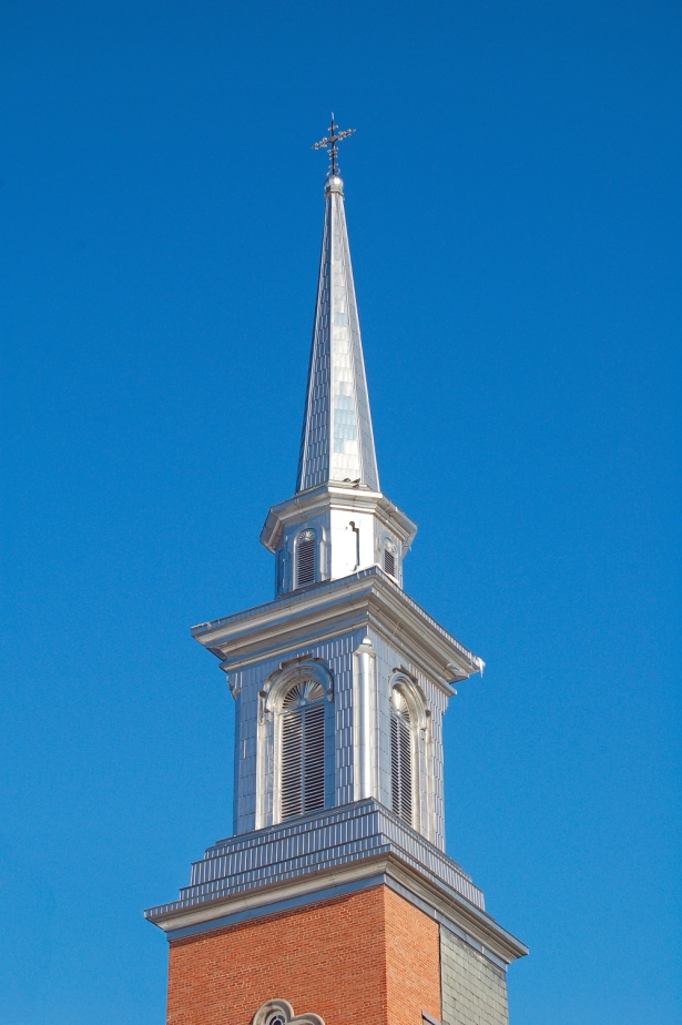 Clocher de l’actuelle église Sacré-Coeur-de-Jésus de Stanstead. Crédit pour la photo : Denis Beaulieu