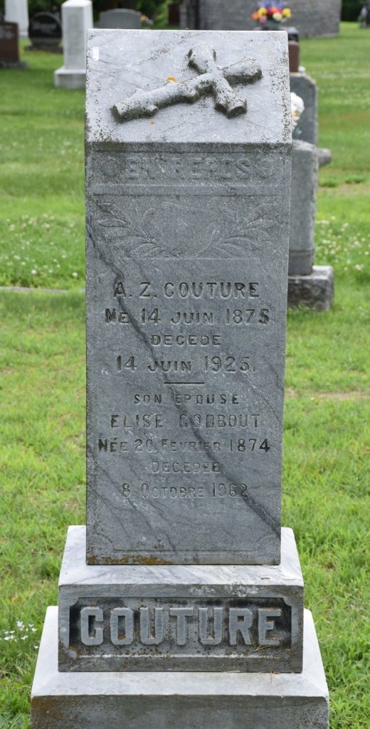 Lieu de repos de Alfred-Zéphirin Couture et de son épouse dans le cimetière Saint-Michel de Sherbrooke. Source de la photo: FindAGrave.com