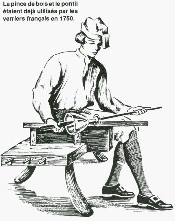 L’artisan-verrier utilise les mêmes méthodes de fabrication que ses ancêtres. Pour exercer son art, il se sert de divers outils qui n’ont pas évolués: la canne du verrier, le pointil, la pince de bois, un petit fourneau, un marbre (établi), un bloc de bois échancré, des ciseaux spéciaux, une pointe de diamant, des morailles, une pucelle, des compas d’acier et à calibrer, une palette de bois, la chaise du verrier.