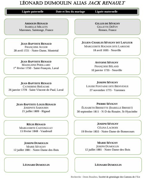 Généalogie – Léonard Dumoulin, Notre-Dame-des-Bois