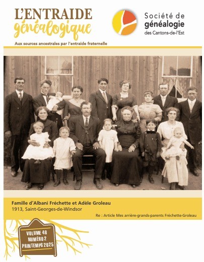 Pour terminer cette première partie de nos chroniques « La revue des revues » de ce printemps 2025, parlons un peu de notre propre revue, celle de L’Entraide généalogique de la Société de généalogie des Cantons-de-l’Est (SGCE), société régionale qui fédère toujours environ 400 membres dans sa 57e année d’existence.