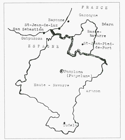 Le royaume de Navarre fut formé vers le début du 9e siècle par un seigneur basque nommé Inigo Arista, dans une région du nord de l’Espagne à la limite d’une influence musulmane périclitante. Appelé Royaume de Pampelune, d’après sa capitale (Pamplona, en espagnol), il prendra le nom de Navarre vers la deuxième moitié du 12e siècle. La plus grande partie du pays se trouve au sud des Pyrénées, d’où il s’étend jusqu’à la vallée de l’Ebre; mais il comprend également, du côté nord, la Basse-Navarre, appelée officiellement Tierra de Allién Puertos.